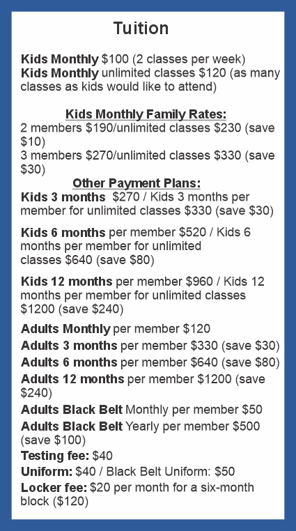 The focus of our Childrens Classes work on self-control & self-discipline while keeping fit & having fun. The focus of our Adult Classes are practical self-defense and body conditioning. |